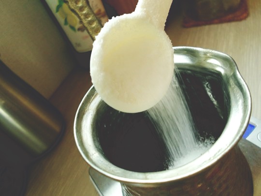 원두 20g, 설탕 15g, 물 120ml