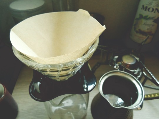 이제 추출된 커피를 하리오 드리퍼에 부어