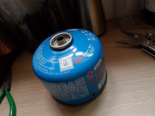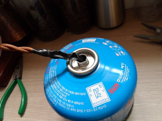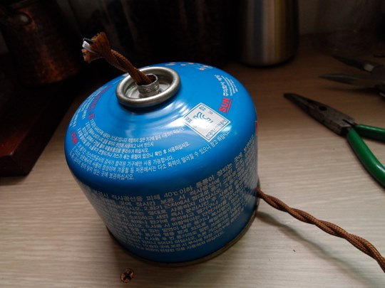 오늘은 다 사용한 이소가스통으로 전기램프를 만들어 보았습니다.