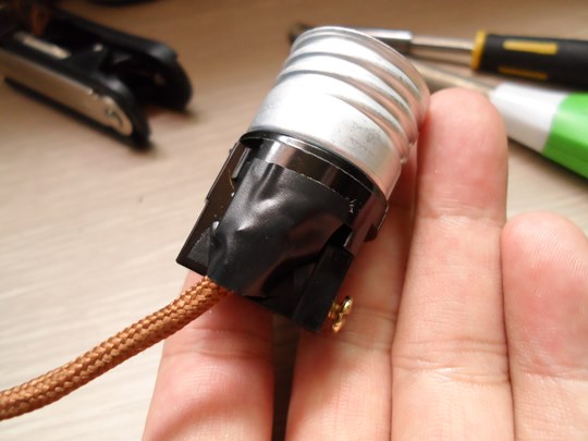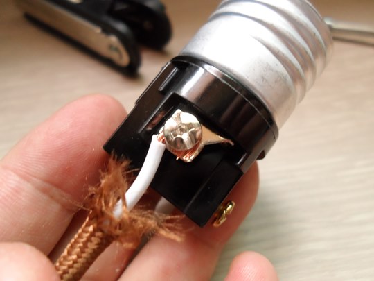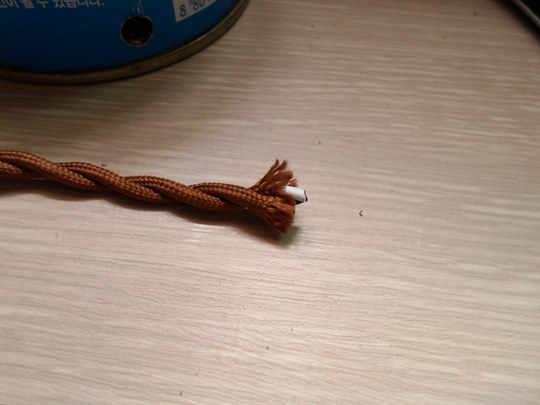전선피복을 벗겨 구리선을 잘 꼬아 소켓에 연결해 줍니다.