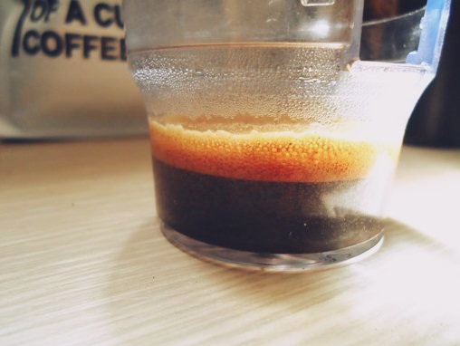 컴프레소 추출준비를 마치고, 뜨거운 물을 부어 에스프레소를 추출해줍니다.