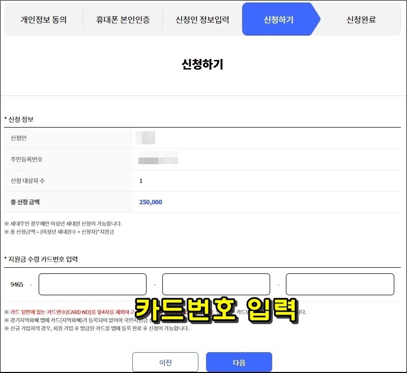 그리고 소유하고 계신 경기지역화폐 카드번호를 입력해 줍니다.