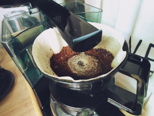 드리퍼에 칼리타 종이필터와 원두를 셋팅해 주었습니다.