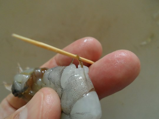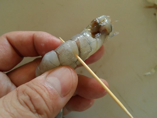 새우내장은 이쑤시개를 몸통에 찔러넣어 당기면 쉽게 뺄수 있습니다.