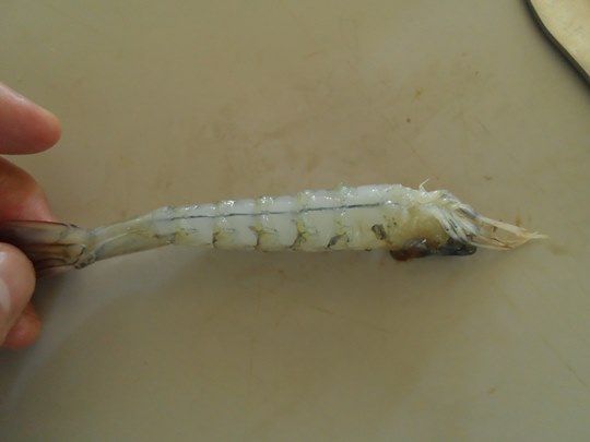 몸통에 있는 새우내장을 제거해줍니다.