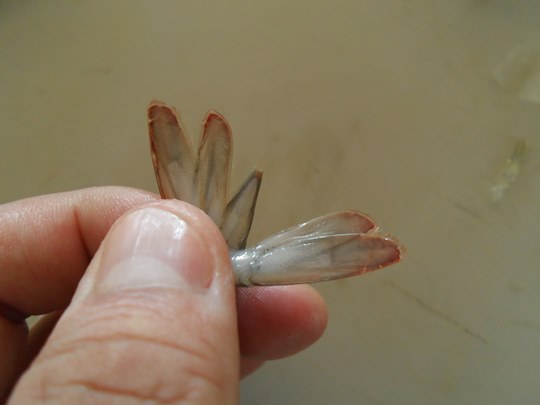 꼬리쪽 한마디는 남겨주시고 나머지는 벗겨내줍니다.