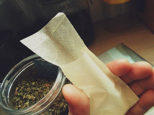 원하는 양만큼 페퍼민트를 티백망에 넣어주고,