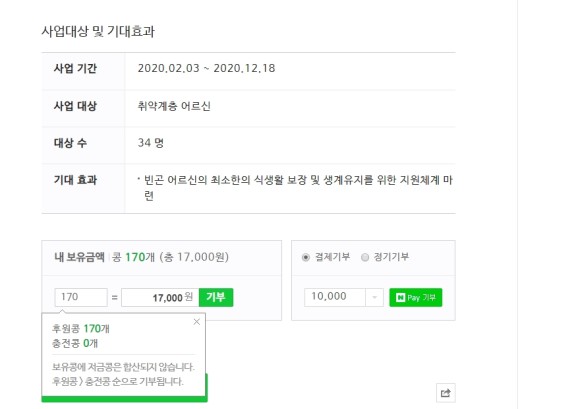 해피빈 뿐만 아니라 결제기부 또는 정기기부를 할 수도 있으니
