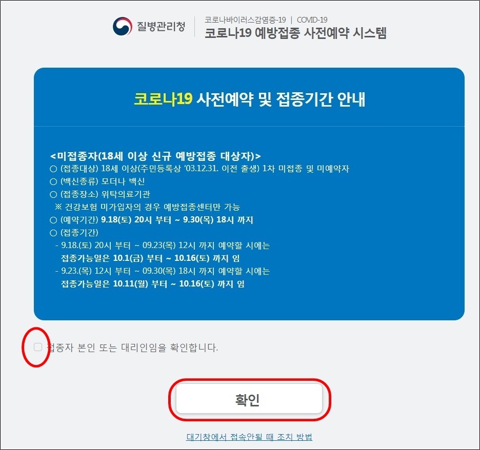 그리고 오늘 9월 30일 18시에 18세 이상 1차 백신접종예약이 마무리 된다고 합니다.