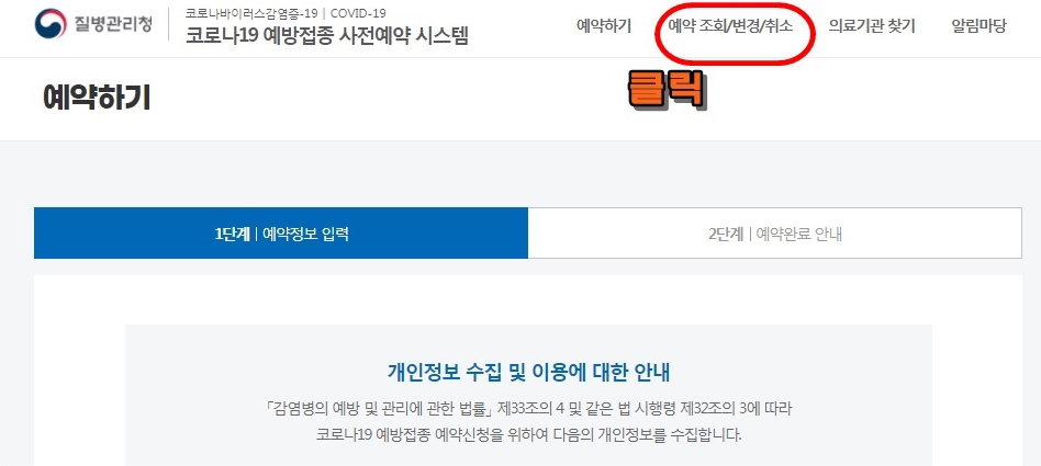 2차 백신접종예약일 변경은 1차 백신접종예약할 때와