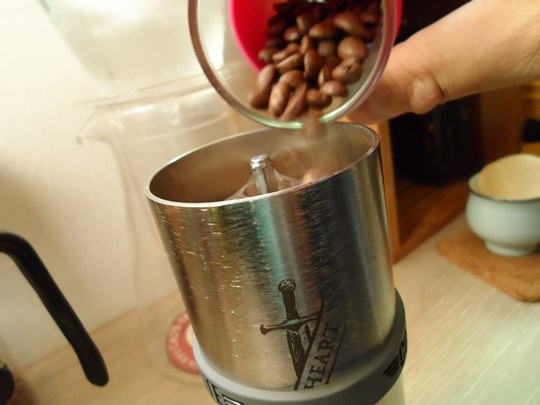 분쇄한 원두가루를 컵이나 피처에 넣어줍니다.