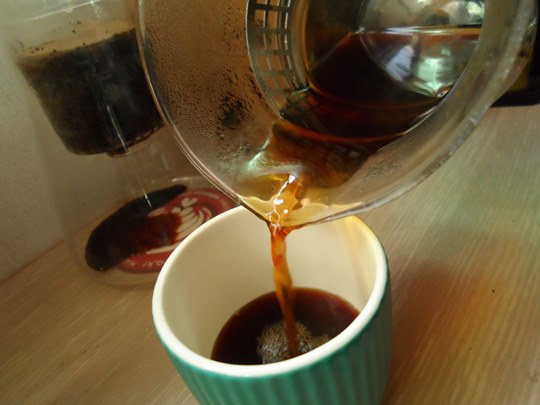 이제 우려낸 커피를 융드리퍼에 전부 부어줍니다.