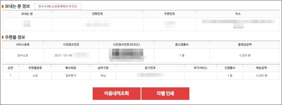 이때 접수번호를 알아두었다가 우체국에 방문하여 접수번호를 알려주면 되는데요.
