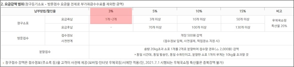 <창구소포접수>를 신청하면 되는데, 1개만 접수하여도 3%의 할인을 받을 수 있답니다.