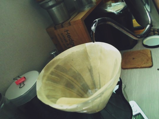 하리오 V60 드리퍼에 종이필터를 씌우고,