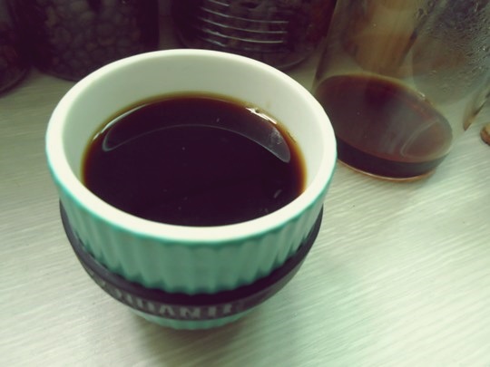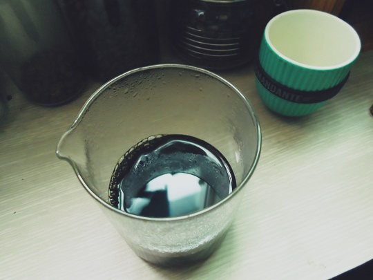 그렇게 약 200ml를 추출하고, 50ml정도의 뜨거운 물을 넣어 희석해주었습니다.