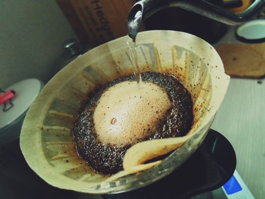 원두가 신선하다보니 잘 부풀어 오르네요.