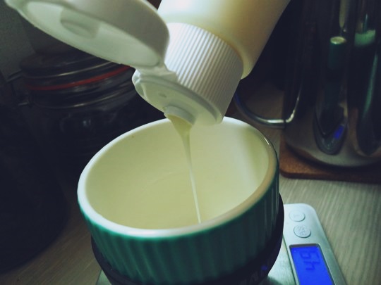 원두를 곱게 분쇄해주고, 컵에 연유를 약 40ml정도 넣어주었습니다.