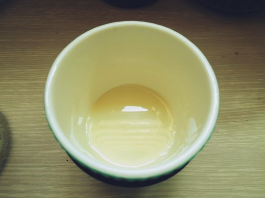 이제 끓인 물을 원두 위에 조심히 부어줍니다.