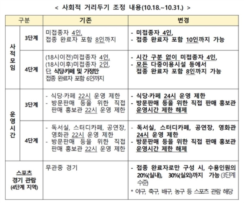10월 18일부터 사회적 거리두기가 조정되어 적용됩니다.
