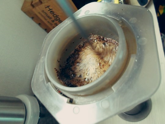 원두는 약 15g정도 분쇄한 후, 에어로프레스에 넣어주었습니다.