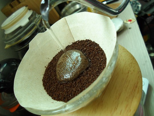 뜨거운 물을 원두가 전체적으로 젖을정도로만