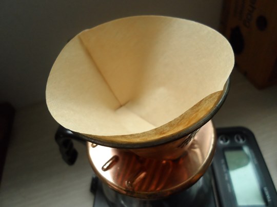 오늘 사용할 칼리타 동드리퍼에 종이필터를 씌우고,