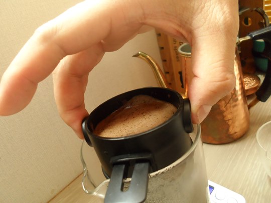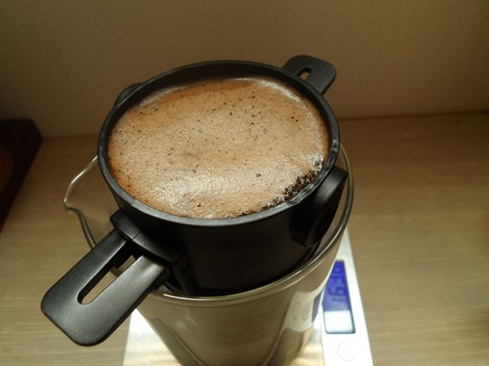 드리퍼 폭이 좁고 깊은 편이다보니 아래로 우려낸 커피가 조금 추출되는데요.