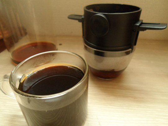 휴대용 접이식 드리퍼로 추출한 드립커피가 완성되었습니다.