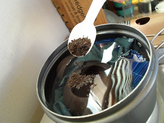 냄비에 자사호와 자사잔을 넣어주는데,