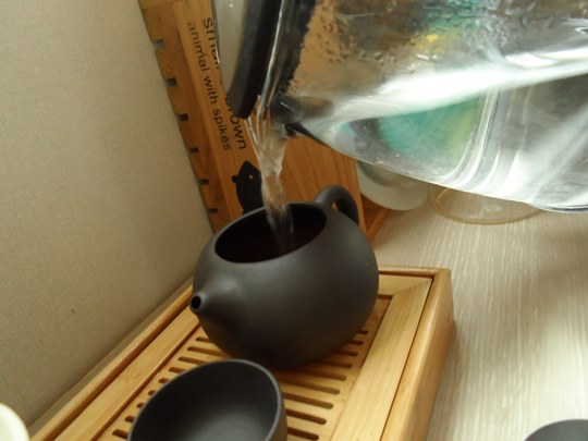 다시 자사호에 뜨거운 물을 채워줍니다.