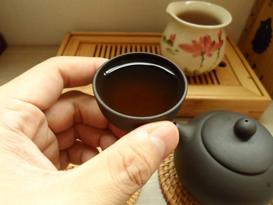 이제 잘 우러난 보이차를 마시면 된답니다.