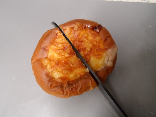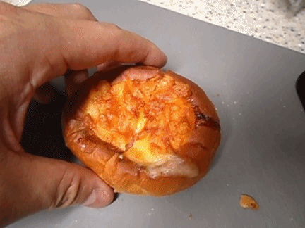 모닝롤 가운데를 파내어 그릇으로 만들어 줍니다.