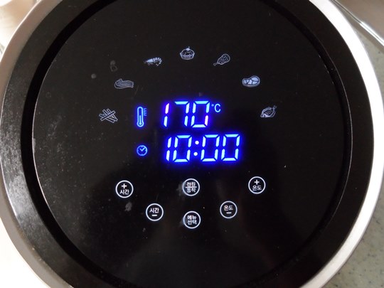 이제 에어프라이어에 넣고, 170도에 10분 동안 구워줍니다.