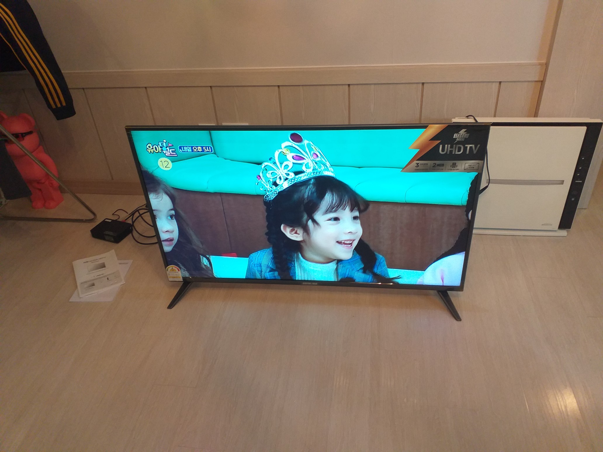 방금 전보다 조금 작은 49인치 사이즈의 일렉트로맨 SMART UHD TV ( E49KL7701 ) 입니다.