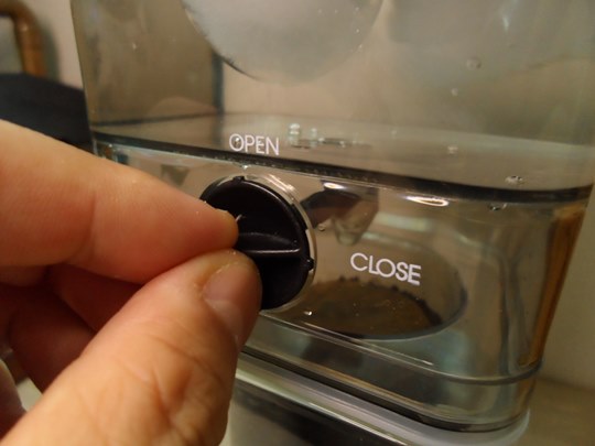옆면에는 물이 떨어지는 속도를 조절할 수 있는 밸브가 있어서