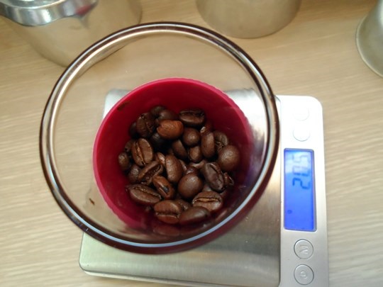 블렌딩 원두 20g을 계량하여 곱게 분쇄를 한 후,