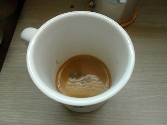 준비해 놓은 머그잔에 에스프레소를 옮겨담습니다.