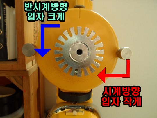 이것을 시계방향으로 돌리면 입자가 작게,