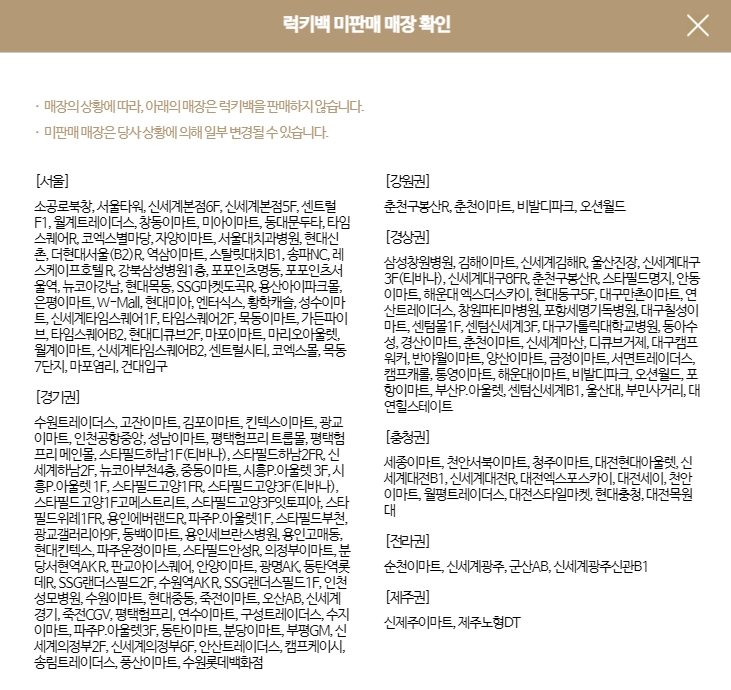 ● 럭키백 미판매 매장 리스트