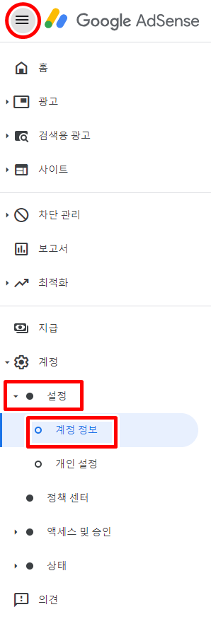 ※계정 -> ●설정 -> ○ 계정 정보