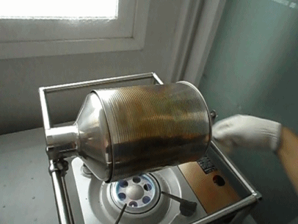 냉각팬에서 원두를 식히는 중 사진 찰칵!