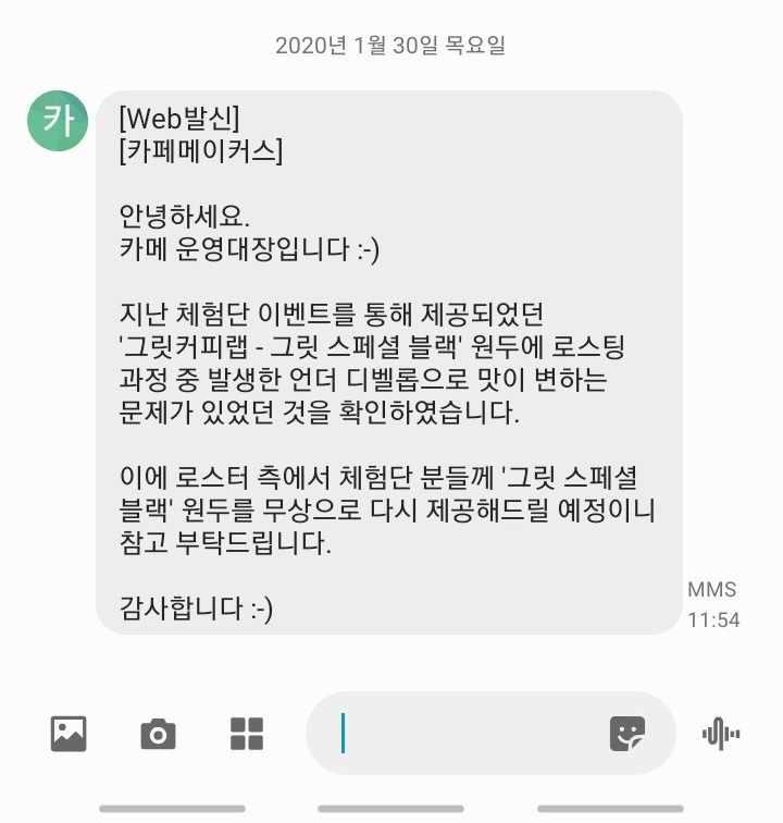 그리고 다시 제대로 된 원두를 보내주신다기에