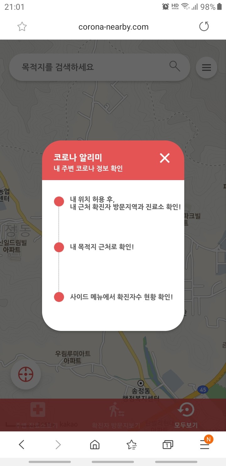 ▶ 코로나 알리미 https://corona-nearby.com/