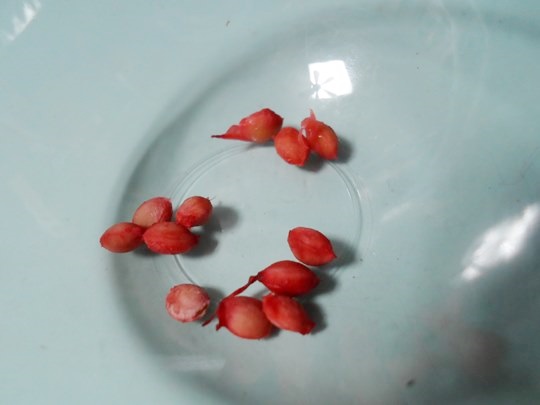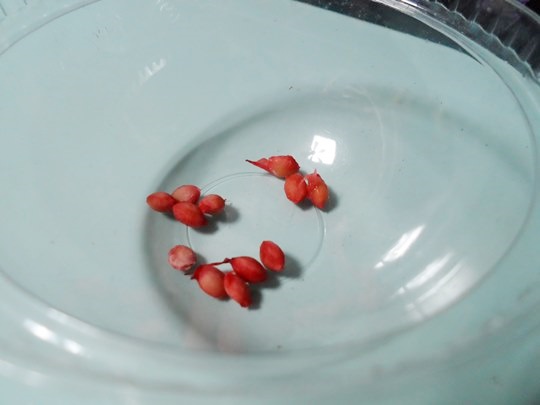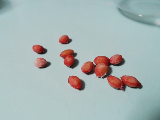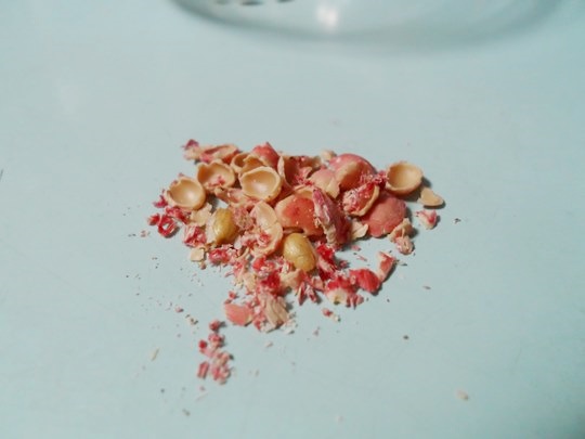 껍질을 벗진 앵두 씨앗이 나왔습니다.