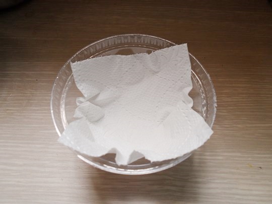 그 위에 젖은 휴지로 덮습니다.